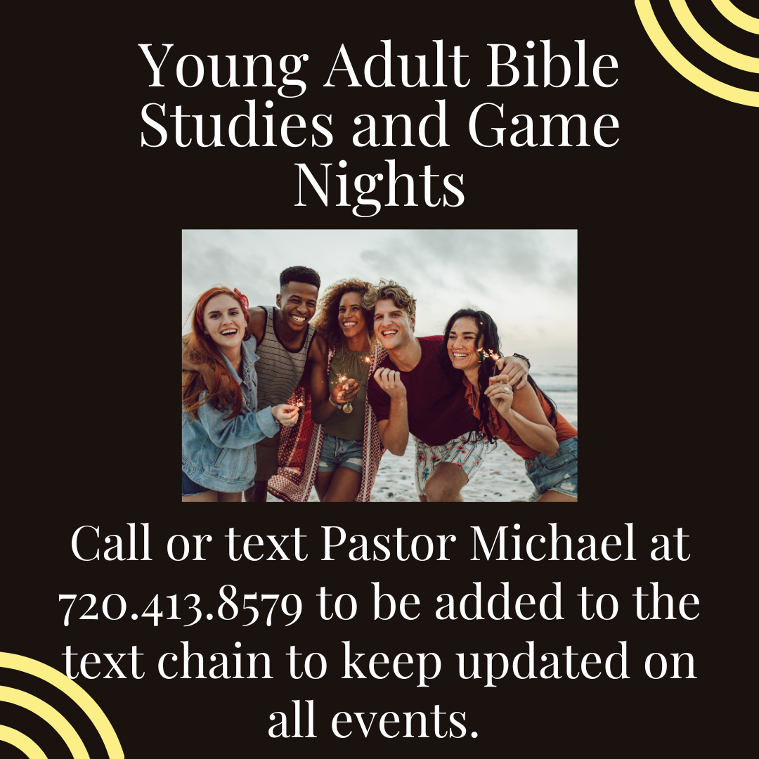 Dig into scriptures with us. We make no assumptions about how much experience you have with scripture. There are no stupid questions. We encourage honest, open conversations. Call/text Pastor Michael (720-413-8479) to be added to the text chain to keep updated on all events.