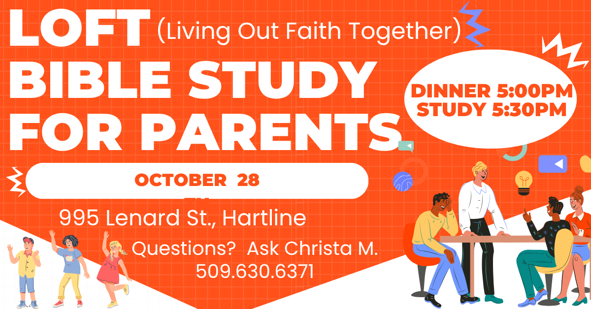 The day varies depending on family schedules. Please contact Christa Mele (509.630.6371) to be added to the contact list. This does not mean you are making a commitment to attend, just that you would like to be kept updated on meeting times.